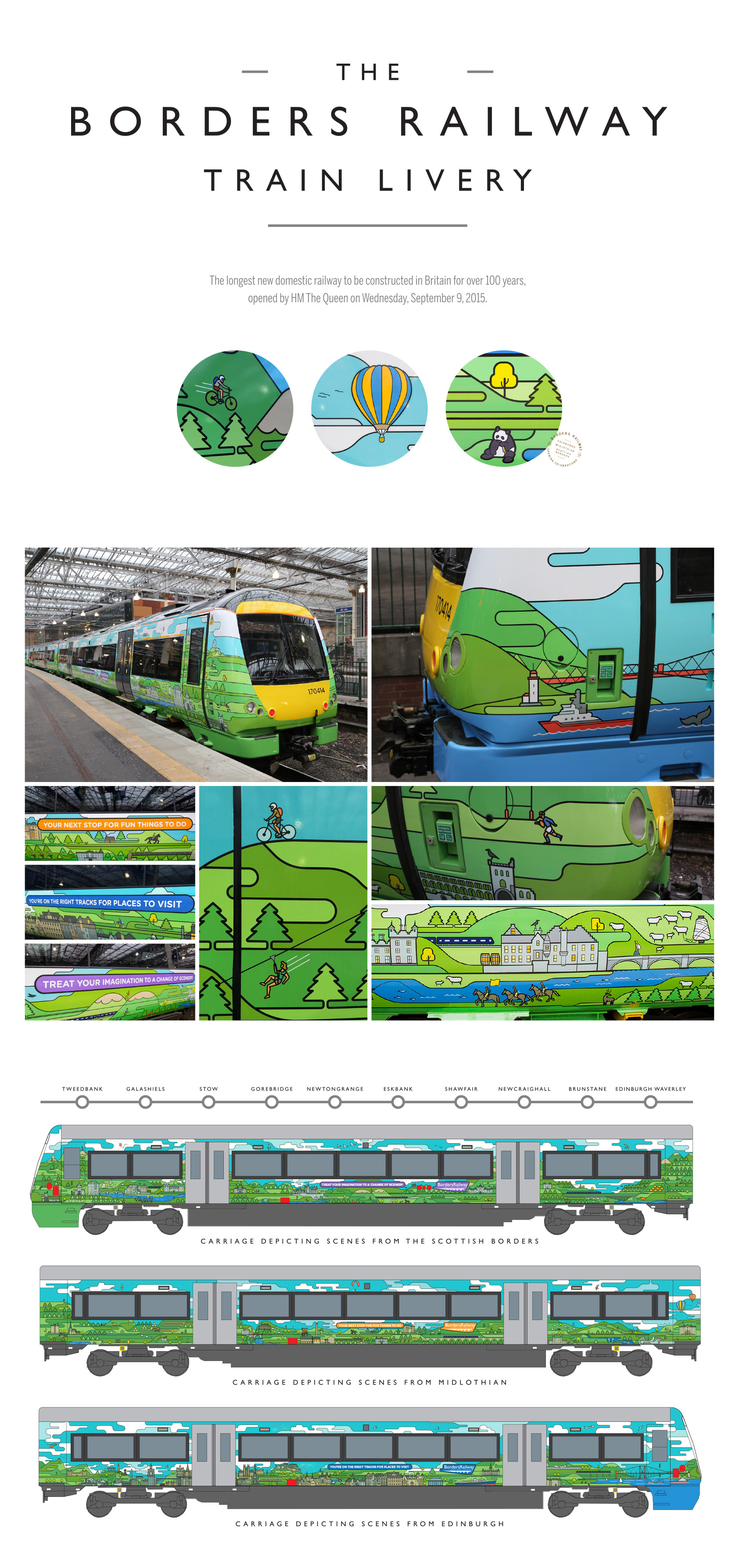 As Creative Director with The Lane Agency, we successfully pitched to our client Marketing Edinburgh and then created an historic train wrap advertising the re-opening of the Borders Railway by HM The Queen in 2015.