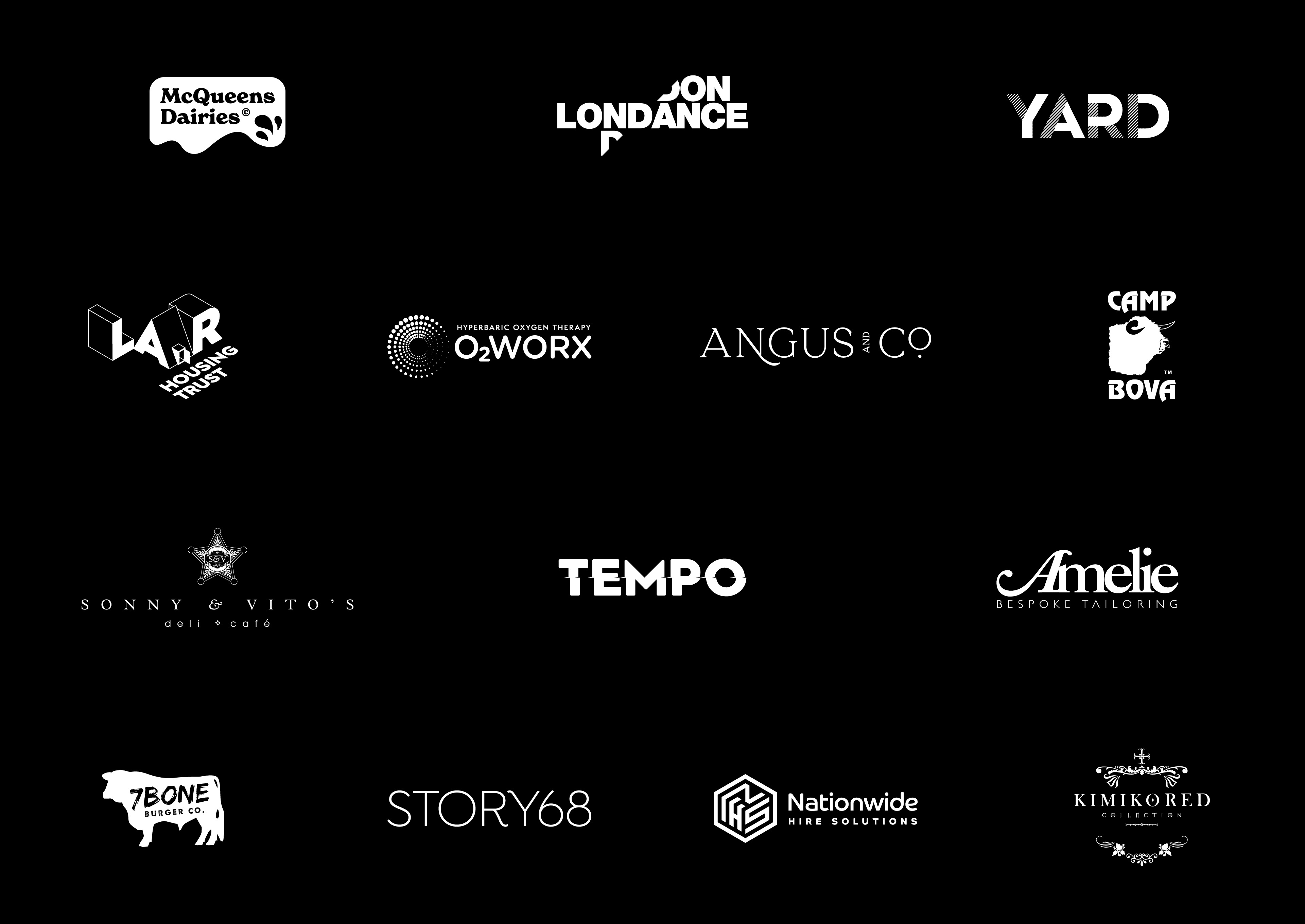 Various branding & visual identity projects including Angus & Co estate agents, London Dance for Sadler’s Wells, McQueens Dairies (concepts), Ballintaggart Hotel's Tully Bar & Cook School, Story68 clothing boutique, Glendaveny Oat Milk (concepts) Camp Bova apparel, Yard Digital, LAR Housing Association, O2 Worx Hyperbaric Oxygen Therapy, Nationwide Hire Solutions, Amelie Bespoke Tailoring & Kimiko Red Collection.